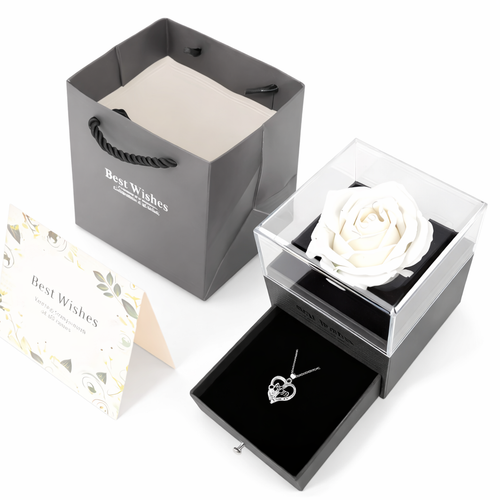 Zestaw Prezentowy „Best Wishes” – Róża Wieczna z Naszyjnikiem dla Mamy